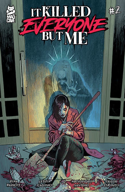 Mad Cave Studios is thrilled to announce that IT KILLED EVERYONE BUT ME #1, the chilling slasher series from acclaimed writer Ryan Parrott (Mighty Morphin Power Rangers, Dead Day), artist Letizia Cadonici (House of Slaughter, The Neighbors), colorist Alessandro Santoro (The Neighbors), and letterer Taylor Esposito (Constantine), has officially SOLD OUT at the distributor level. The demand has been so overwhelming, a second printing is now on the way!