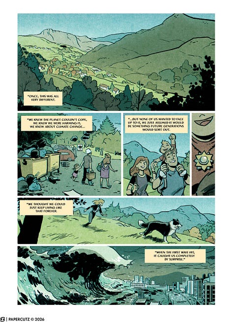 Mad Cave Studios’ all-ages imprint Papercutz proudly presents ARCHIPELAGO VOL. 1, a timely middle-grade graphic novel set in a near-future world transformed by rising seas, written by Basque authors Martin and Xabier Etxeberria (Buyan, Broken Eye), with art by Alex San Vicente Sanvi and colors by Sergio Román Sedyas.