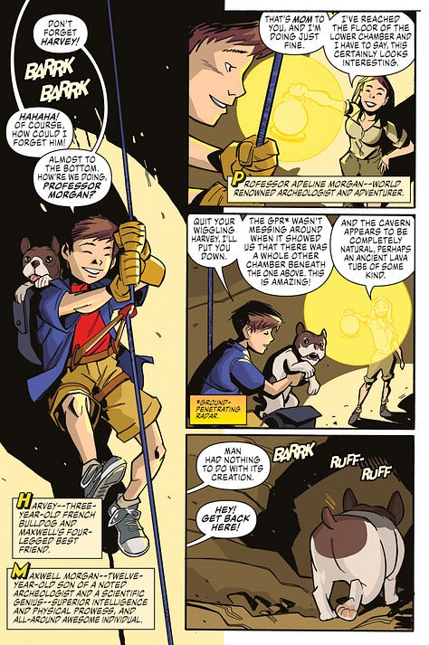 “Working on this book has been a dream come true!” added Co-Writer, Jeannine Acheson, “When Tom asked me to work on this concept that he’d had for such a long time, I couldn’t resist. Gods, archaeology, French bulldogs, giant apes? What’s not to love? Craig Rousseau’s artwork brought all of our crazy ideas to vivid life, and I’m so excited for readers to meet Maxwell, Harvey, and the rest of the gang!”