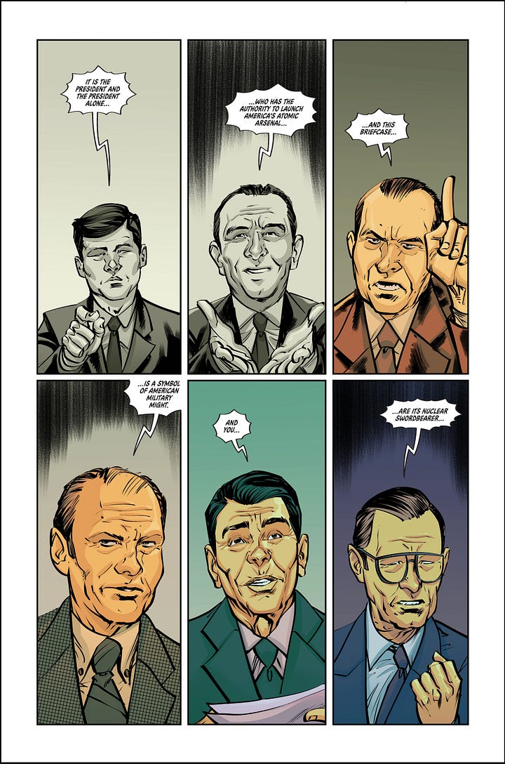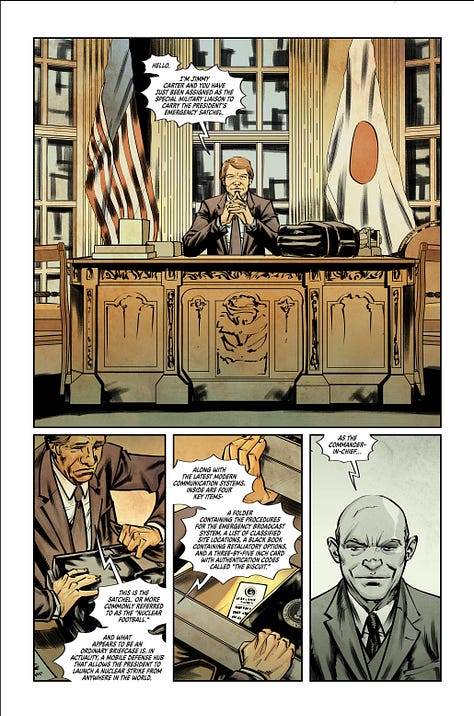 Mad Cave Studios is proud to announce DON’T FORGET YOUR BRIEFCASE, a five-issue political farce by best-selling author Eliot Rahal (Knock Em Dead, Midnight Vista) and acclaimed artist Phillip Sevy (Tomb Raider, X-Men Unlimited). Joined by colorist Warnia K. Sahadewa and letterer Frank Cvetkovic, this team is set to deliver a thrilling, darkly comedic take on nuclear warfare and the chaos of global power structures.