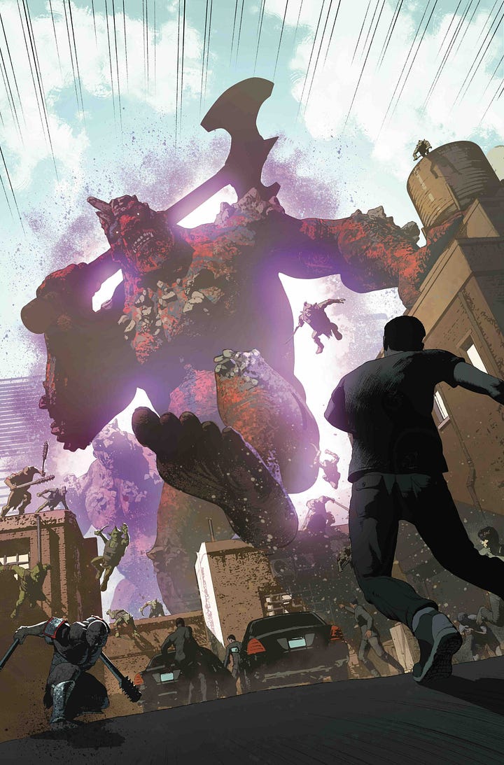 Conquered is a fresh, four-volume series from the minds of Mark Millar (Kick-Ass, Civil War) and Valerio Giangiordano (Spawn) about a world grown soft with technology and man-made laws forced to fight for their lives or become the slaves to the millions of barbarians who charge in with their horses, dragons and mythological beasts we thought only existed in storybooks.