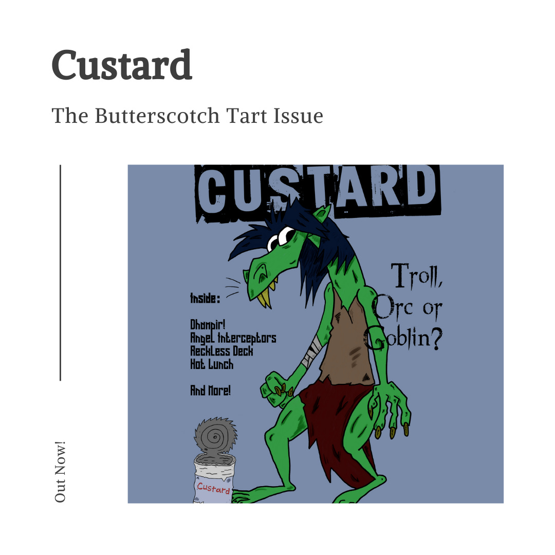 After the tension of putting together my first-ever publication, I looked towards what was to come next. I had a rough idea, and Custard - The Butterscotch Tart Issue started to come together.