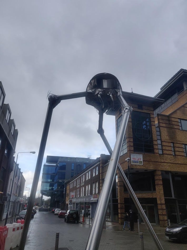 Woking - as well as being reasonably local for me, also has some science fiction background to it - being the place where the Martians first landed. This is something to look forward to if you go into town.