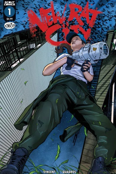 After two winning Kickstarters - both of issue #1 and the complete story, New Rat City has been picked up by Scout Comics. It is now available in print at your local comic shop or digitally on the Scout Comics website.