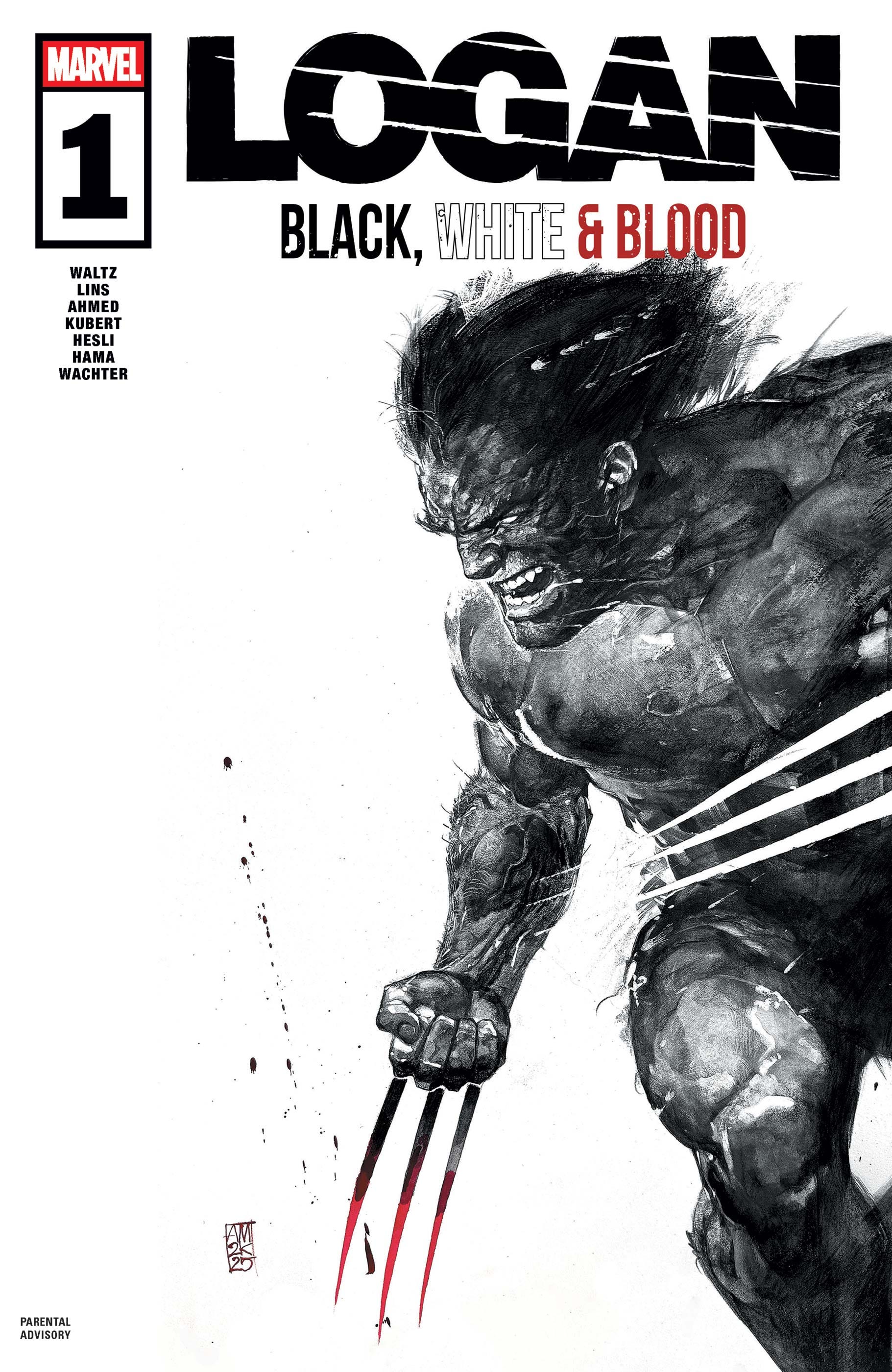 THE BRUTAL AND VIOLENT LIFE OF LOGAN! WOLVERINE. A.K.A. LOGAN’s long and violent history is showcased in brand-new tales by top tier talent in brutal black, white and red! Tom Waltz and Alex Lins reveal Logan’s never-before-revealed military service during the 1950s - with a secret connection to a fan-favorite Marvel character! A mission in seedy 1970s Times Square puts Logan on the trail of a deranged serial killer, as told by Saladin Ahmed and Adam Kubert. Survival is the name of the game after Logan escapes from Weapon X - by Larry Hama and Dave Wachter.
