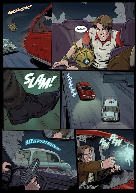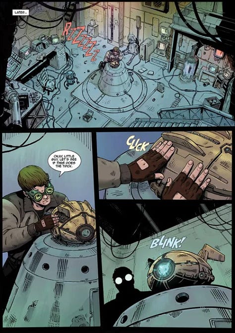Kicking off with an excellent X-Files-type tease, Jackrabbit immediately sets the tone with intrigue and unease. It artfully blends action, mystery, and perfectly executed sci-fi tropes. From the very first pages, there’s a palpable tension as shadowy figures meet in secret, cryptic conversations unfold, and we’re left wondering what exactly is going on beneath the surface.