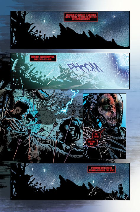 Working with colourist Sally Jane Hurst, John has written and drawn a 10-page mind-bending tale that brings his long-time SF creation crashing into the world of WesterNoir, the western horror series which features in the Quantum title.