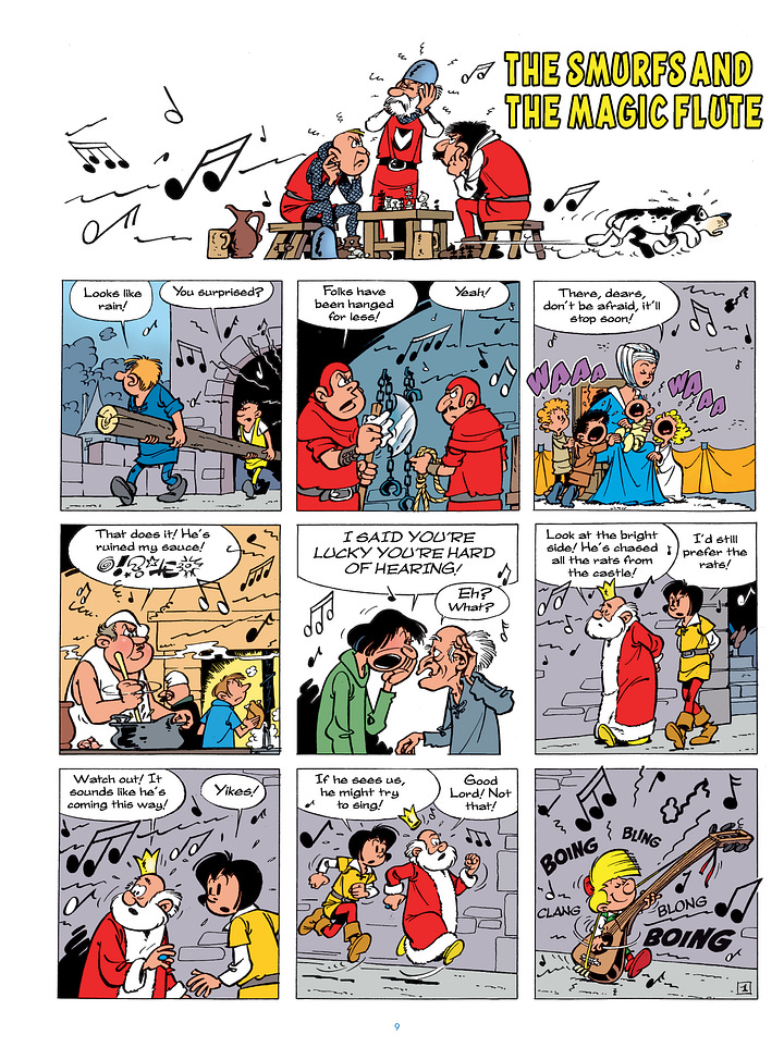 For the first time ever, The Smurfs adventures are collected in their originally published order in English. From their very first appearance in the 1958 Johan and Peewit story, “The Smurfs and the Magic Flute,” to their debut “Little Smurfs” adventures and their 1963, first album-sized story “The Flying Smurf,” The Smurfs Archives Volume 1 is the perfect collection for every Smurf fan, young and old. Collecting the first twelve Smurf stories along with introductions and historical context by Smurfologist, Matt Murray, this 304-page hardcover collector’s edition is a must own book.