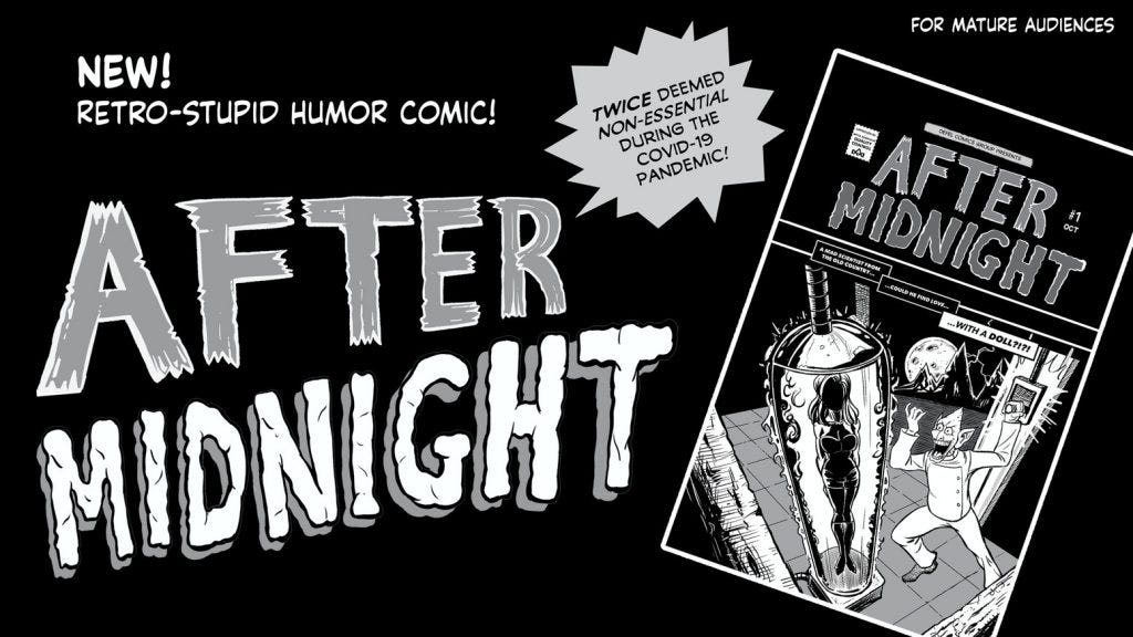 After Midnight was created in the spirit of humor magazines of the past, and is essentially my homage to Mad magazine. I first read Mad when I was 10 years old, and ever since then I've loved what it stands for. My comic isn't trying to replicate an issue…