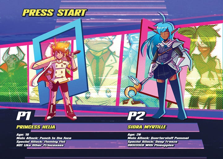If you love Scott Pilgrim, Chef’s Kiss, or Everyday Hero Machine Boy, this one’s for you. Part She-Ra and the Princesses of Power, part Double Dragon, and 100 percent heart, Beat Every 1-Up mixes magical-girl aesthetics with video-game-style storytelling and a glitchy sense of humor for fans of arcade cabinets, fighting games, and queer rom-coms alike.