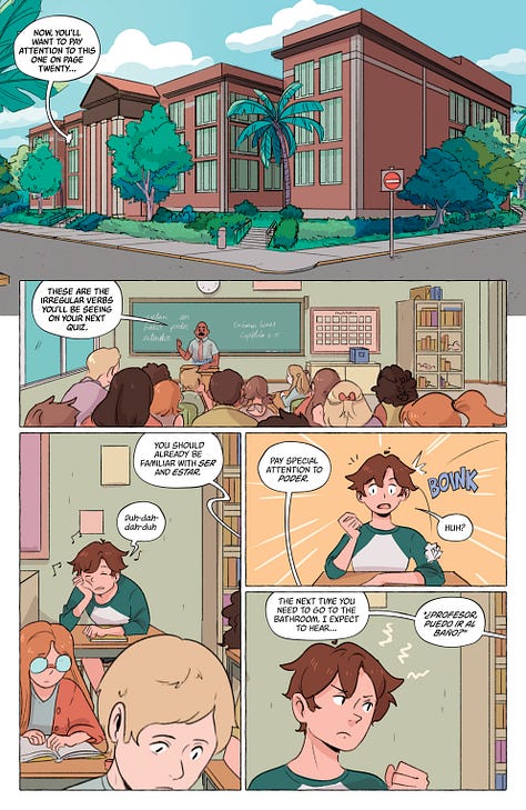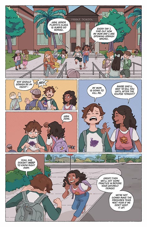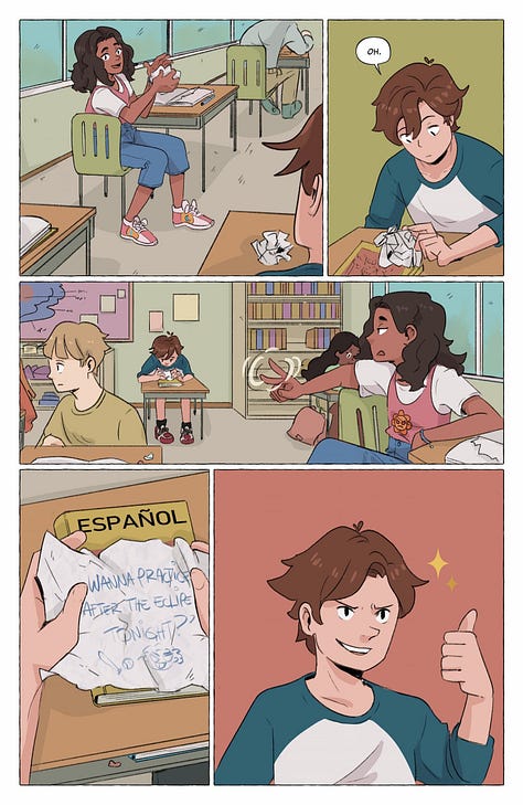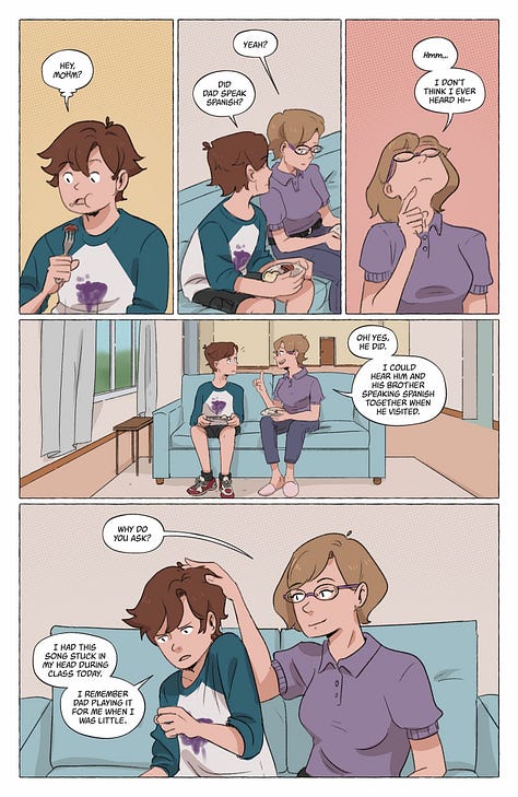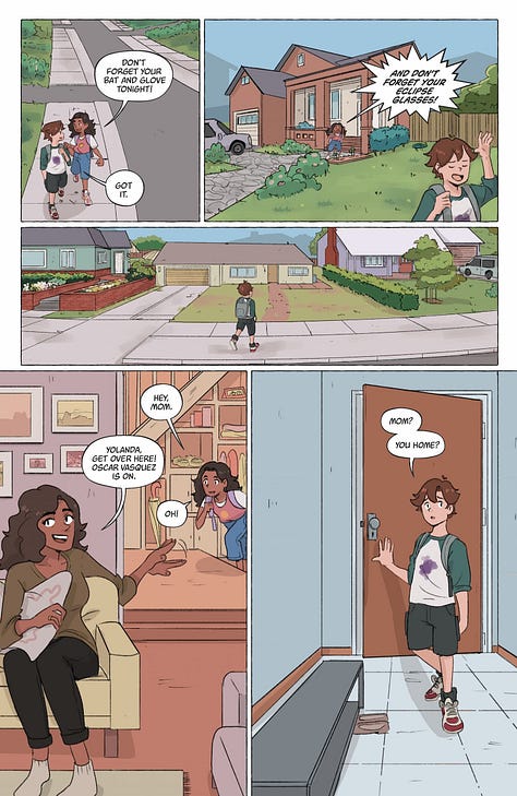 “I wrote this book for one person and one person only-- my niece,” said Stack. “She'll be eleven when the book comes out which is around the time I started thinking about a lot of the ideas that show up in it. How am I like my friends? How am I not? Why do we have this thing in common, this common heritage, but have such different experiences with it? Like our character Travis, I didn't really know how to talk about that or who to talk about that with. I felt a little cut-off from the language and the people I needed for that. Travis and Yolanda, our book's co-lead, are both Mexican American but their families and their experiences are genuinely very different. A lot of their conflict comes first from trying to pretend those differences don't exist and then believing that they're irreconcilable. I hope kids like my niece read our book and see that there's no expiration date on connecting with your heritage and embracing a larger community that can't be put into one, easily-defined box.”